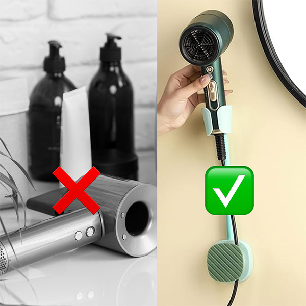 Mbaj banjon tënd të rregullt me këtë zgjidhje kursuese hapësire për mure. Thjesht ngjit atë në çdo sipërfaqe të banjos dhe fillo stilimin – instalim pa dëmtime në disa sekonda! Gjithashtu, është i përshtatshëm për 99% të tharëseve të flokëve për një rehati totale!